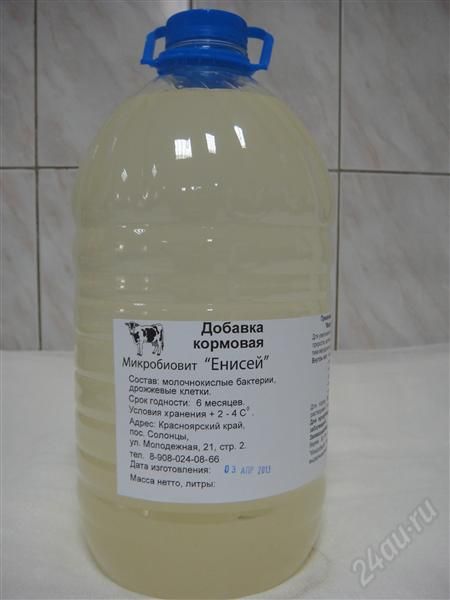 «Добавка кормовая «Микробиовит «Енисей» , водный раствор содержащий в своем составе молочнокислые бактерии, и дрожжевые клетки