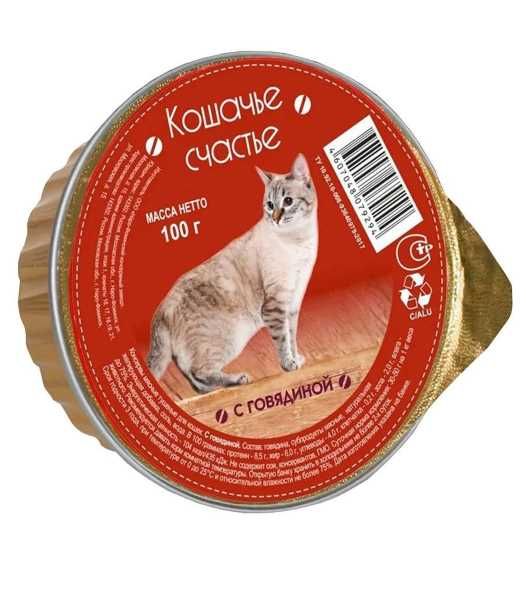 Кошачье счастье 100 г д/кошек Говядина ламистер 1/20
