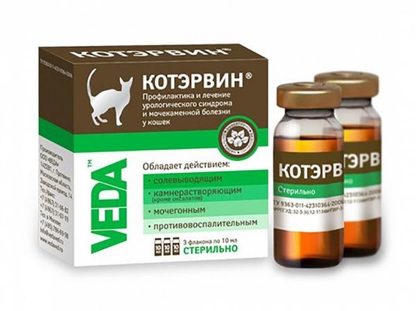 Котэрвин применяют для профилактики и лечения урологического синдрома и мочекаменной болезни кошек.