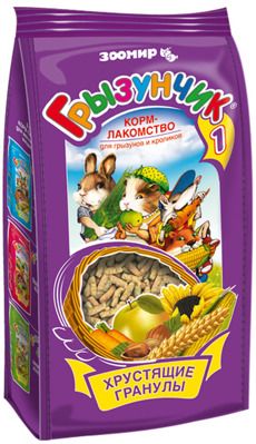 Корм "ГРЫЗУНЧИК" по праву называется кормом-лакомством, поскольку он имеет привлекательные для животного вкус и хрустящую структуру, удобные форму и размер гранул, а благодаря применению современных технологий - высокую усвояемость и питательную ценность.
