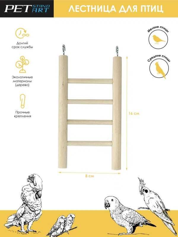 Лестница для птиц «4 Steps» PetStandArt, Размер 16x8см. Материал: Дерево