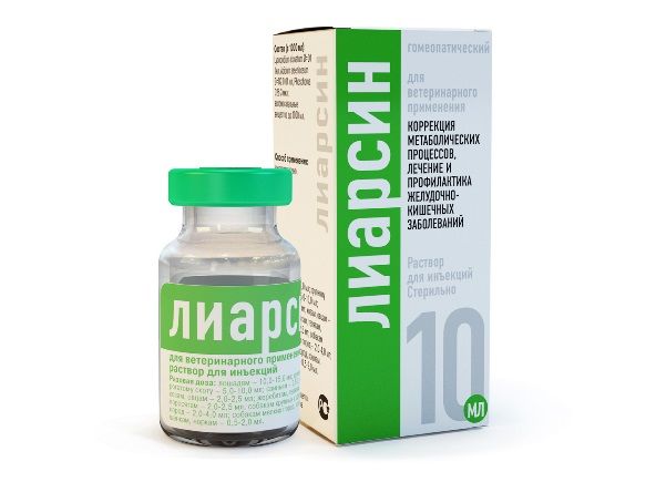 Лиарсин обладает регулирующим действием на белковый, углеводный, жировой обмен веществ, восстанавливает нарушенные функции желудочно-кишечного тракта. По степени воздействия на организм теплокровных животных препарат относится к малоопасным веществам, не обладает местнораздражающим и сенсибилизирующим действием. Гомеопатические компоненты, входящие в состав Лиарсина в сверхмалых дозах, в организме животного не накапливаются.