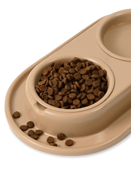Миска 0,2л пластиковая двойная на подставке серая 990003