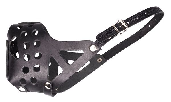 Эргономичный сплошной намордник из натуральной кожи, учитывающий породные особенности крупных собак с широкой мордой. Множество вентиляционных отверстий для воздухообмена.