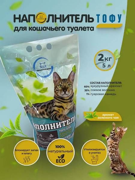 Наполнитель ТОФУ д/кошек КОМКУЮЩИЙСЯ Зеленый чай 5л/2,1 кг