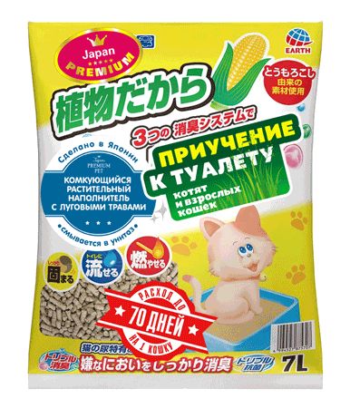 Наполнитель ЯПОНИЯ д/кошек РАСТИТЕЛЬНЫЙ КОМКУЮЩИЙСЯ с Луговыми травами 7л