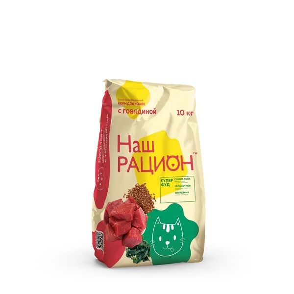 Наш рацион 10кг д/кошек Говядина 5779 1/4