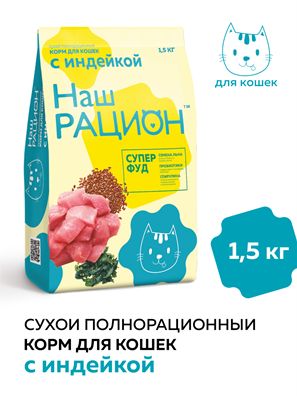 Наш рацион 1,5кг д/кошек Индейка 5793 1/8