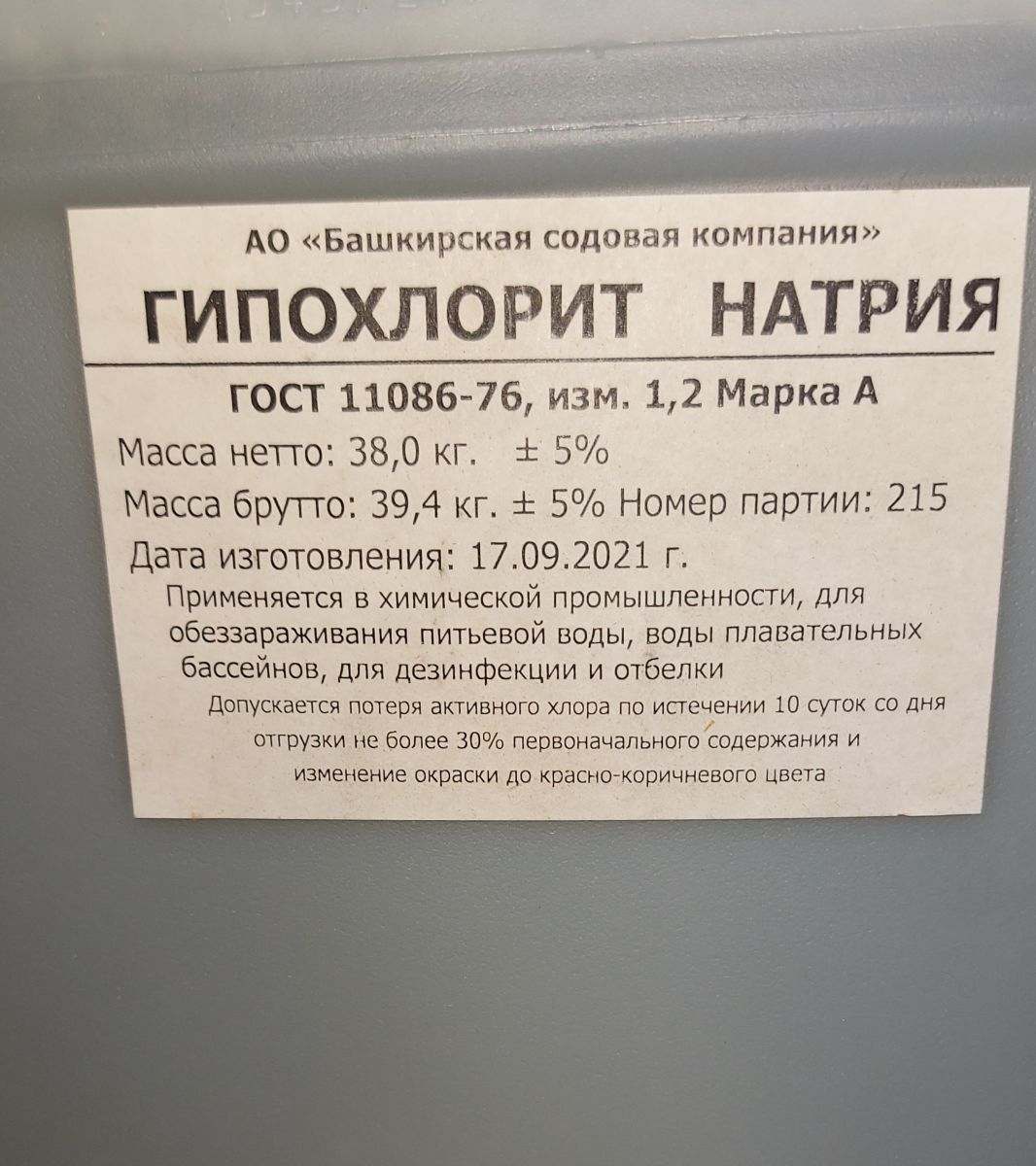 ХРАНЕНИЕ ГИПОХЛОРИТ НАТРИЯ МАРКИ А