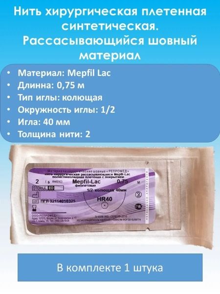 Нить Полидиоксанон Mepfil-D атр.№1-0,75м HR-40