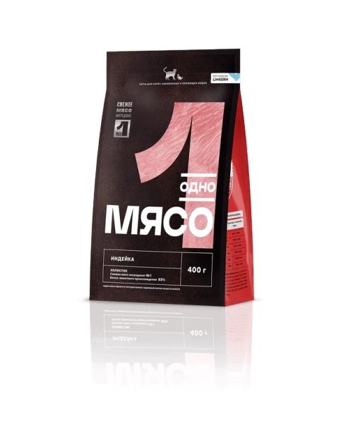 Одно Мясо 0,4кг д/кошек с мясом индейки 1/8