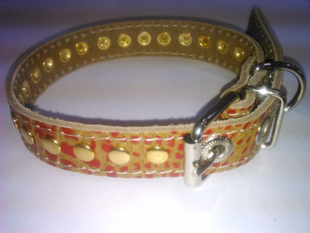 Ошейник №20 32-40см кожа, рыжий ,клепки 025