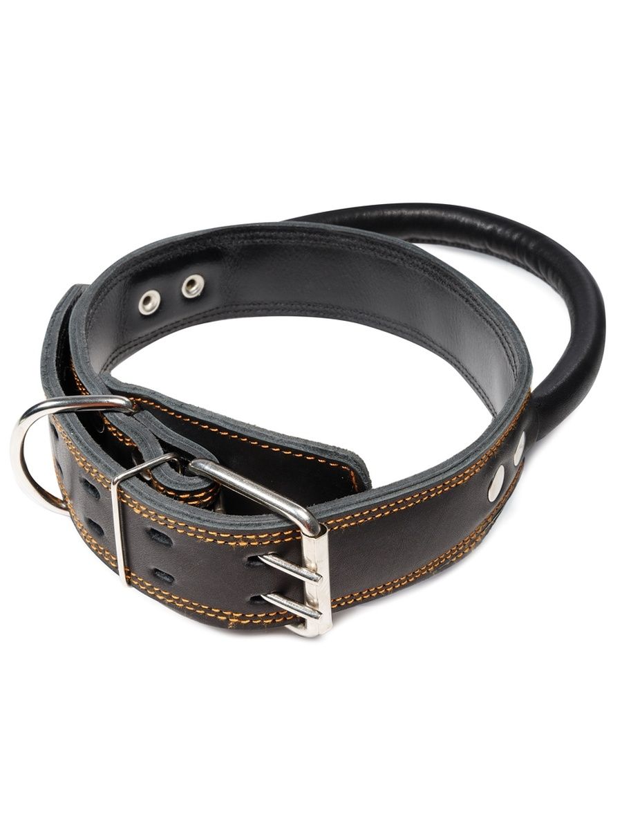 Ошейник кожаный двойной с круглой ручкой, 45*760мм, Gamma