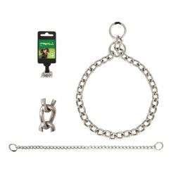 Ошейник-удавка однорядный из металлических звеньев создан для безопасного выгула активных и сильных собак. Звенья имеют гладкую поверхность и плотно скреплены между собой, благодаря чему шерсть собаки не травмируется даже при сильном натяжении. Ошейник имеет специальные кольца для удобной фиксации поводка.