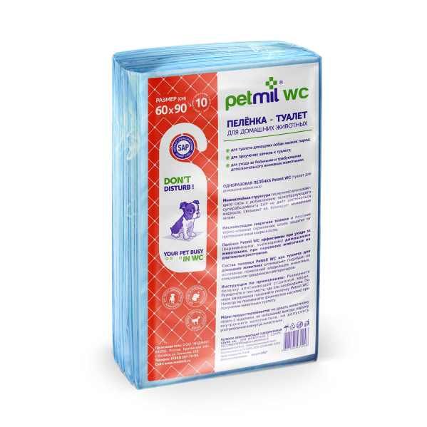 Пеленки 60*90 см 10шт впитывающие Petmil WC ГЕЛЬ 1248