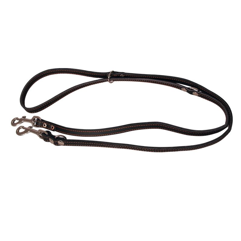 Перестежка — разновидность поводка, который отличается удобством и многофункциональностью. Состоящий из 3 колец и 2 карабинов по краям, он отлично подходит для дрессировок и прогулок, а также для вождения двух собак одновременно.