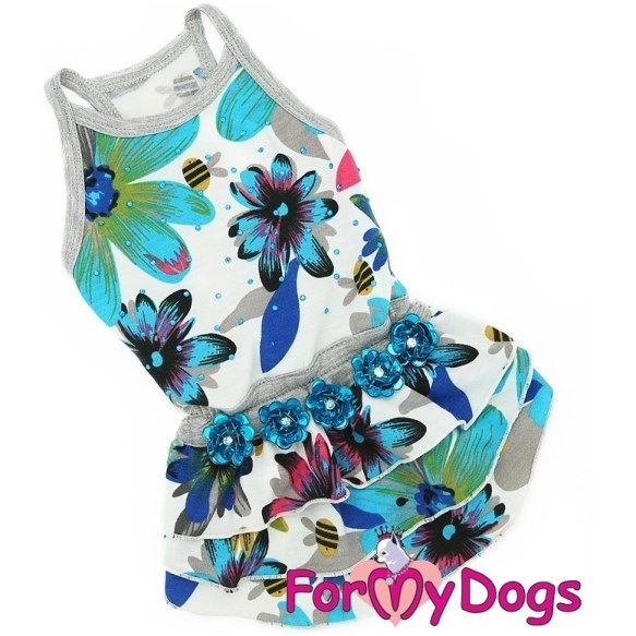 Платье «Цветы» голубое 12 ( спина 27см, грудь 36см ) 7283