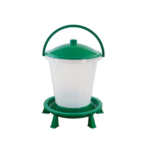 Круглый поддон с устойчивыми ножками. Полукруглая ручка бака для воды, предназначена для переноса поилки или ее подвешивания.