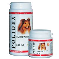 Полидекс Иммунити Ап содержит сбалансированный комплекс витаминов, микроэлементов и аминокислот, направленный на укрепление иммунитета. Предназначен для восполнения энергетических потребностей организма собаки при повышенных физических нагрузках, под влиянием неблагоприятных факторов внешней среды. Дополнительные дозы витаминов повышают эффективность ферментных систем, обеспечивающих нормальный обмен белков, жиров и углеводов, эффективность тканевого дыхания. Препарат стимулирует энергетический обмен, улучшает поглощение кислорода тканями, способствует коррекции метаболических процессов, улучшает общее состояние организма. Не содержит искусственных отдушек и красителей. Сочетается с готовыми кормами.