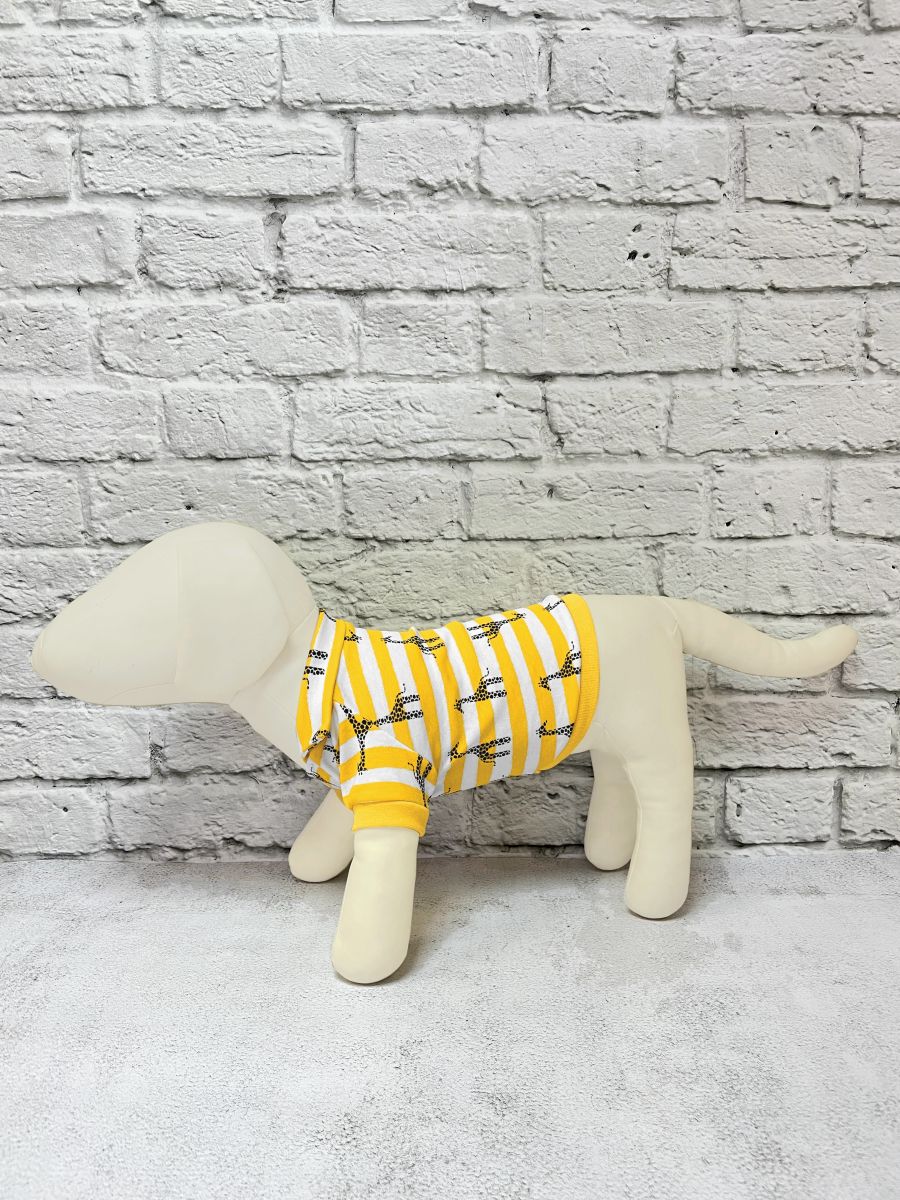 Привлекательное и безупречное по стилю поло сделано из мягкого 100% хлопка. Модель имеет широкую стойку воротничок из однотонной ткани - компаньона, прекрасно подойдет любому стильному парню. Одевается через голову. Поло OSSO Fashion отлично садится по фигурке. Смотрится на собаке эффектно, ярко и очень красиво.