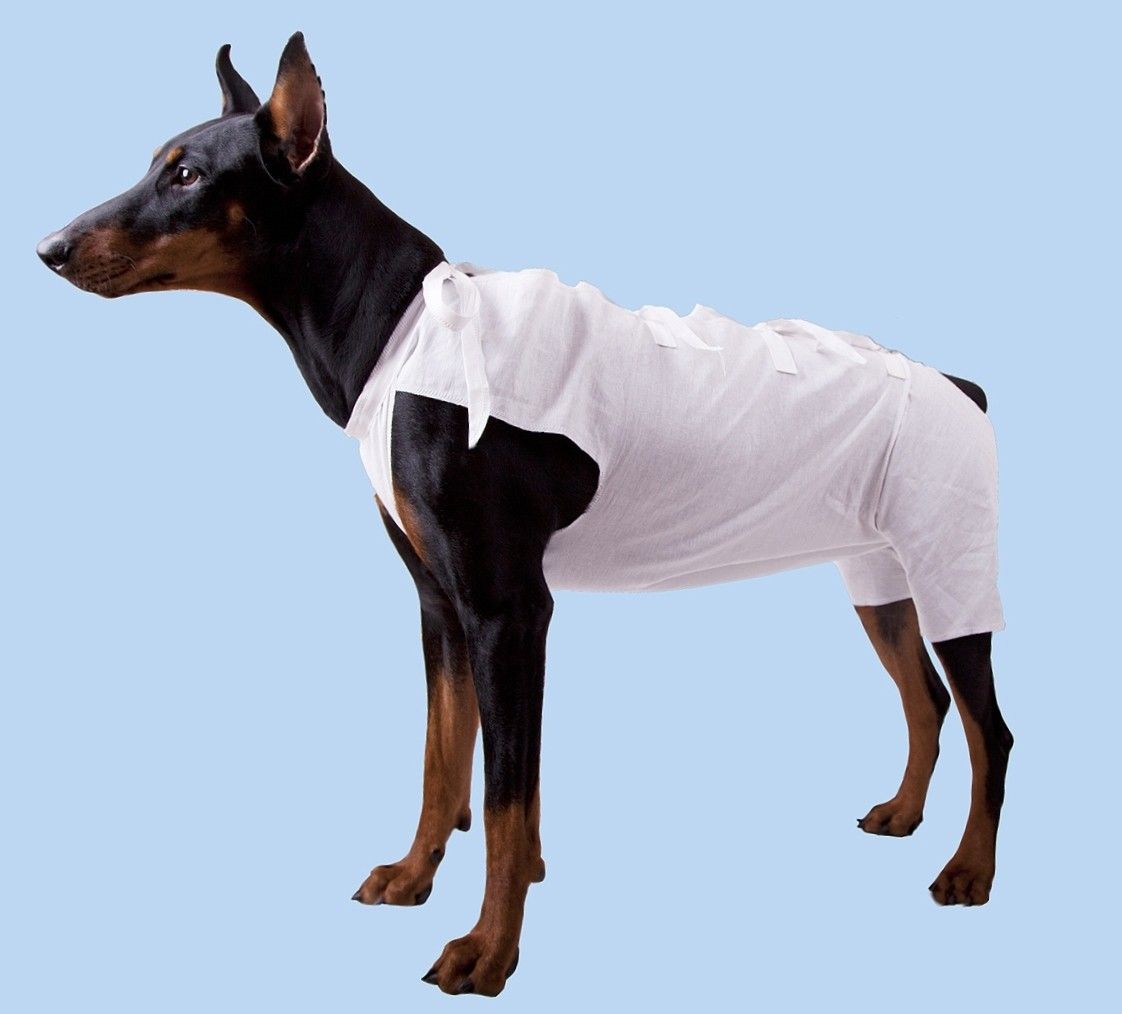 Советуем не оставлять животное без присмотра до полного послеоперационного восстановления. Очень часто бывает, что животные не могут привыкнуть к попонам и пытаются ее снять или разгрызть. В этом случае, придется прибегнуть к дополнительным средствам защиты здоровья вашей собаки - купить специальный защитный ветеринарный елизаветинский воротник и закрепить его на шее животного. Это ускорит процесс выздоровления.