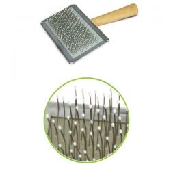 Пуходерка имеет частую тонкую металлическую щетину с каплей на кончиках, что бы не травмировать кожу Вашего питомца. Удаляет старую шерсть и подшерсток, стимулирует волосяные луковицы, избавляет от колтунов и придает шерсти здоровый вид.
