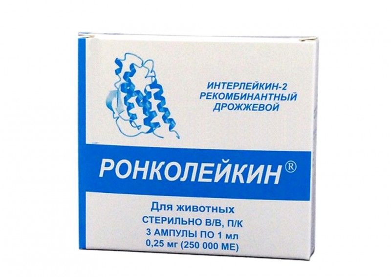 В комплексном лечении вирусиндуцированного хронического гломерулонефрита кошек Ронколейкина® рекомендуется применять каждые два месяца внутривенно в дозе 10000 МЕ/кг один раз в день в течение 5 дней, животным назначается низкобелковая диета. В результате лечения увеличивается продолжительность ремиссии и улучшается прогноз заболевания.