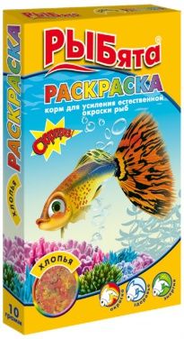 Компания Зоомир разработала специальный корм для усиления окраски рыбок – РЫБята Раскраска. За счет наличия определенных витаминов и микроэлементов, питание обеспечивает здоровое развитие организма животного, включая улучшение яркости окраски, иммунитета, урегулирование обмена веществ. Также оно придает поведению животного активности и игривости. Одна пачка содержит 10 г продукта.
