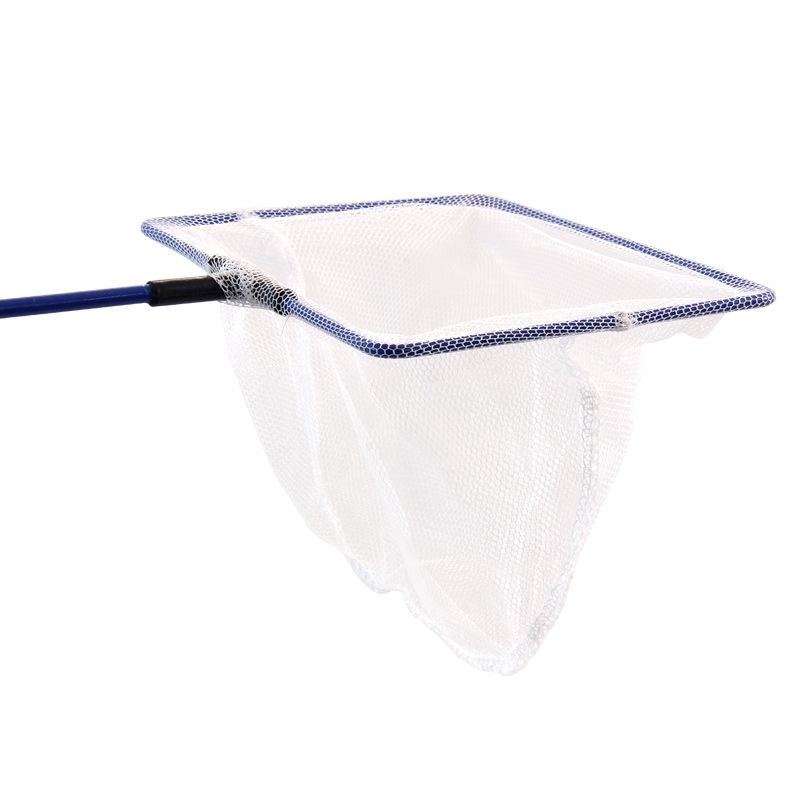 Сачок аквариумный. Корпус и ручка изготовлены из металла, устойчивого к изгибанию. Капроновая сетка надета на корпус и закреплена. Ручка сачка заканчивается пластиковой насадкой с петлей для подвеса.