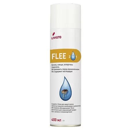 Фли действует как «липкая ловушка» для всех этапов жизненного цикла блох и пылевых клещей. Обволакивает тонкой пленкой взрослых блох, яйца, личинки и куколки не давая им двигаться и развиваться. Спрей Фли контролирует даже паразитов, резистентных к традиционным пестицидам. Пылевые клещи становятся неподвижными через 1-2 минуты, личинки – в течение 10 минут.
