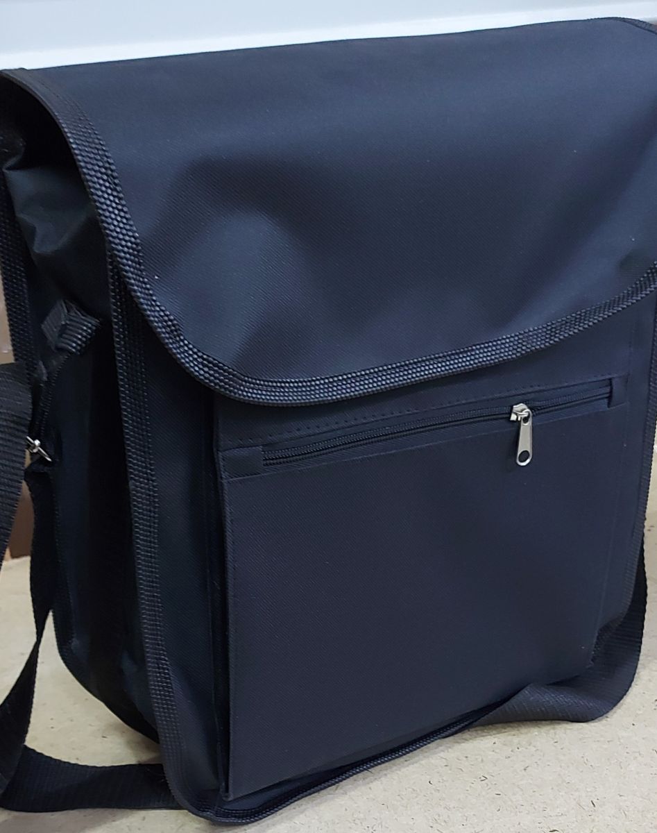 Материал сумки водонепроницаемая и износостойкая техническая ткань, чёрного цвета.