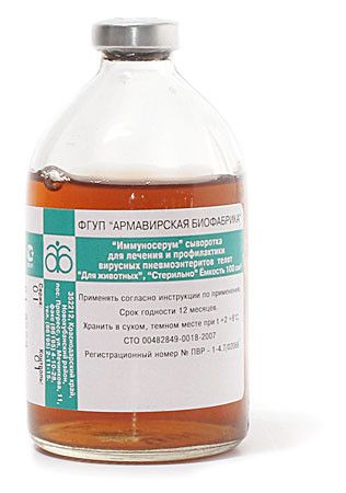 Одновременно сыворотку добавляют в той же дозе при выпаивании больным телятам молозива (молока), настоев лечебных трав и отваров, бифидумбактерий и других средств неспецифического лечения желудочно-кишечных заболеваний телят.