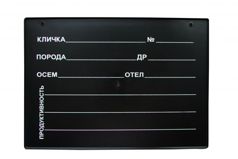 Трафарет (информационная табличка) для коров изготовлена из жесткого пластика размером 35см на 25см, имеет одну чистую сторону для рациона, а на другой стороне наносится необходимая информация о животном. Информацию на трафарете можно наносить черным маркером.