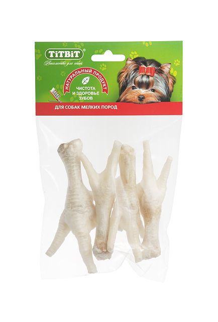 Высушенные куриные лапки. Высокое содержание хрящевой и соединительной ткани. Упаковка содержит 4 лапки. Обеспечивает дополнительное поступление в организм необходимых элементов для роста, развития и поддержания в норме суставов. Привлекательное лакомство для собак мелких пород, используется как игрушка, отлично очищает зубы и массирует десны. Применять с осторожностью для собак с аллергией на куриный белок. Изделие содержит трубчатую кость и не предназначено для полного поедания. Как только собака съела футляр из кожи, сухожилий и мышц – необходимо заменить лакомство на новое.