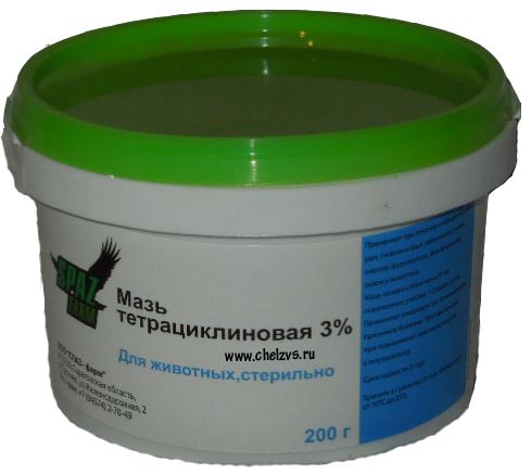 действующего вещества 0,01г (10000 ЕД) тетрациклина гидрохлорида, а в качестве вспомогательных веществ – вазелин и ланолин.