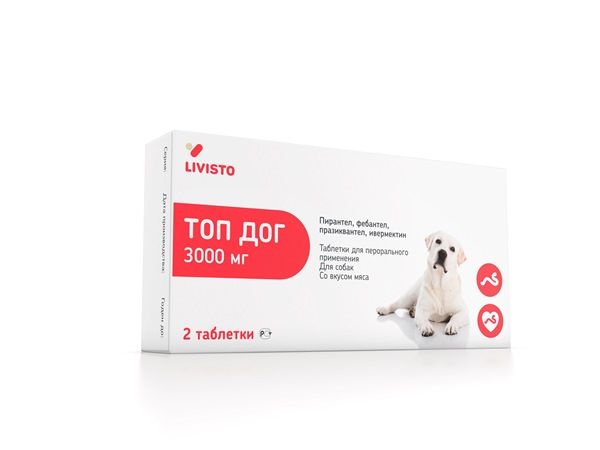 Топ Дог – комплексный противопаразитарный препарат, обладающий широким спектром действия против круглых и ленточных гельминтов, паразитирующих у собак, включая: Ancylostoma caninum, Uncinaria stenocephala, Trichuris (Trichocephalus) vulpis, Toxocara canis, Toxascaris leonina, Dirofilaria immitis, Dipylidium caninum, Taenia spp., Echinococcus spp., Diphyllobotrium latum, Multiceps multiceps, Mesocestoides spp.