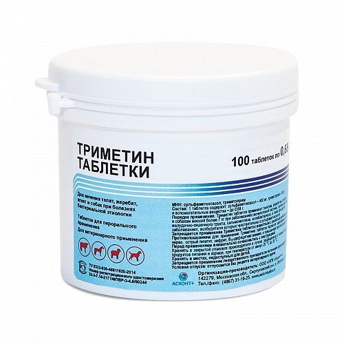 ИНСТРУКЦИЯ по применению Триметина таблеток для лечения телят, жеребят, ягнят и собак при болезнях бактериальной этиологии (Организация-разработчик: ООО «НПК «Асконт+», Московская обл.)