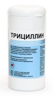 Для лечения некробактериоза и копытной гнили дистального отдела конечностей и копытец в составе комплексной терапии Трициллин наносят в зависимости от площади пораженной поверхности и глубины поражения в количестве 2,5-3 г 2-3 раза с интервалом 72 часа.