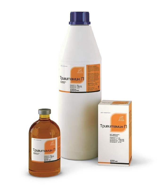 Тривитамин является комбинированным препаратом, в котором витамин А, витамин Д3 и витамин Е приведены в физиологически обоснованных соотношениях, оказывая синергидное действие на организм животного.