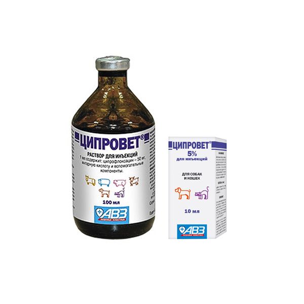 Лечение собак и кошек при инфекционных болезнях желудочно-кишечного тракта, дыхательных путей, мочеполовой системы, суставов, мягких тканей и кожи, пупочных инфекциях, атрофическом рините, бронхопневмонии, колибактериозе, сальмонеллезе, пастереллезе, микоплазмозах, других первичных и вторичных инфекциях бактериальной этиологии, возбудители которых чувствительны к ципрофлоксацину.