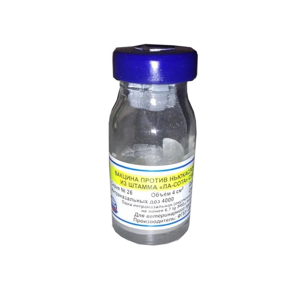 «Вакцина против ньюкаслской болезни из штамма «Ла-Сота» сухая живая» зарегистрирована в РФ. Номер регистрационного удостоверения: 12-1-11.12-0703№ПВР-1-1.9/00193.