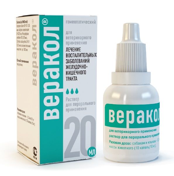 Гомеопатическое средство Веракол, благодаря натуральным компонентам оказывает мягкое противовоспалительное действие, регулирует моторику желудочно-кишечного тракта. Веракол по степени воздействия на организм теплокровных животных относится к малоопасным веществам, в рекомендуемых дозах не оказывает местнораздражающего, резорбтивно-токсического, мутагенного и сенсибилизирующего действия.
