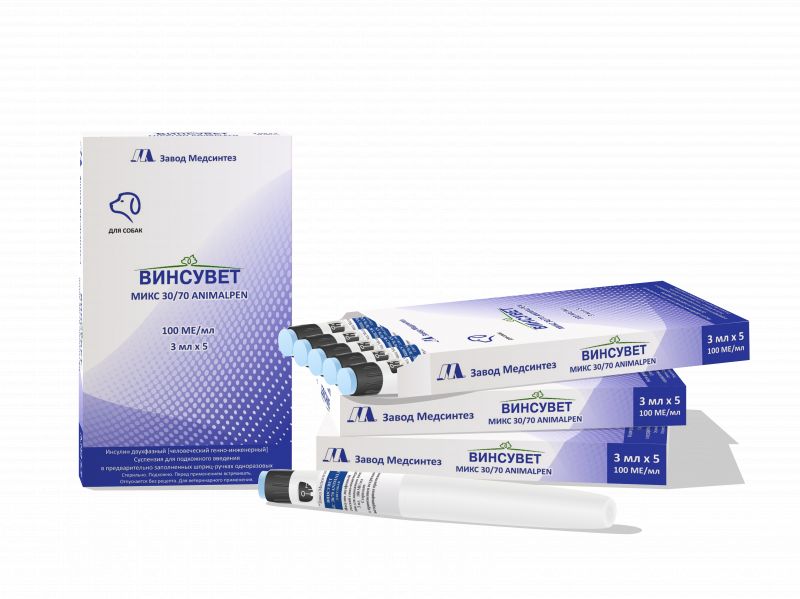 ВИНСУВЕТ микс 30/70 ANIMALPEN применяют собакам для лечения сахарного диабета, требующего инсулинотерапии.