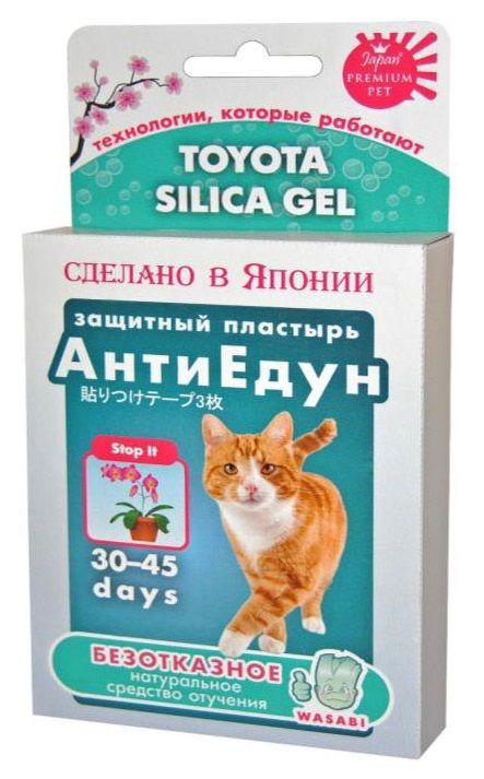 Сильное отпугивающее средство на основе экстракта Васаби, зарекомендовавшее себя в Японии как Безотказное в отношении кошек и собак. Пластырь наклеивается на горшок с цветком, который необходимо защитить от поедания питомцем.
