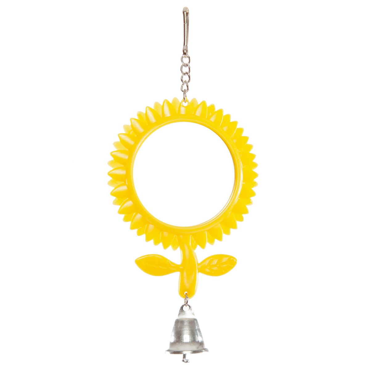 Зеркало с колокольчиком для птиц SkyRus «Ромашка», жёлтая, 8х19см