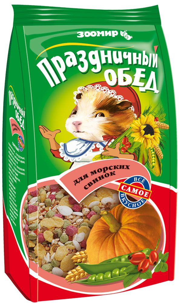 Корм-лакомство предназначен для морских свинок. Праздничный обед - это настоящее лакомство с выдающимися пищевыми свойствами и восхитительным аппетитным ароматом, основу которого составляют самые привлекательные, вкусные и полезные компоненты.